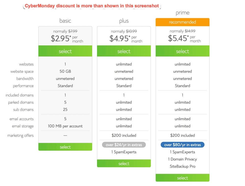 Here are all the 3 plans offered by Bluehost. (The price will be lower than shown; on Cyber Monday discount sale)